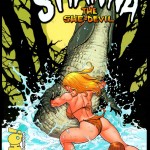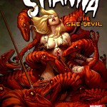 “Shanna, A Mulher Demônio”, a genial “recriação” de Shanna, uma antiga personagem secundária da Marvel. Aqui Frank Cho deixou bem claro que não é uma revitalização da personagem clássica, mas uma recriação total com origem bem diferente da original. Aqui não aparece o tal do marido dela da terra selvagem. Também pouco importa. Shanna é a loira gostosa que não tem nada de burra! Esta minissérie foi publicada dentro da revista Marvel Max.