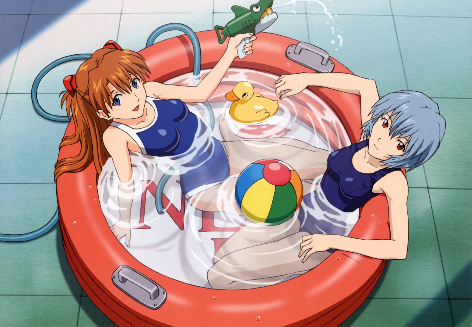 As meninas de Evangelion, Asuka Langley e Ayanami Rei, em um momento de descontração. Abaixo a mesma cena com uma ajudinha do Photoshop. 😉