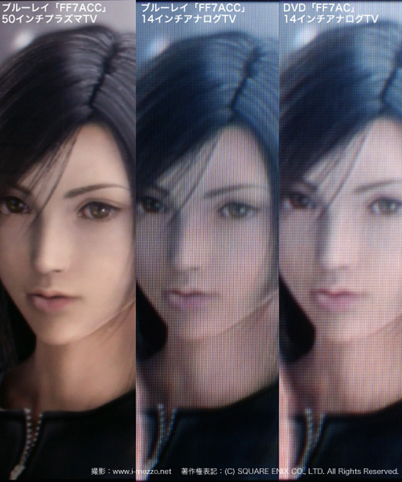 Se ainda não esta convencido, mais uma comparação. Desta vez entre o DVD e o Blu-Ray de Final Fantasy VII: Advent Children Complete. Que na Tv analogica fica a mesma coisa.