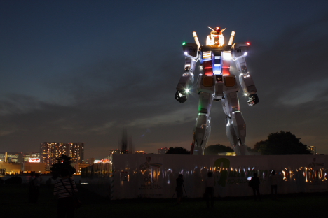 Ah, quem viu fotos diurnas do robô deve ter notado o logo das Olimpíadas. Acho que o mecha faz parte da campanha para que Tokyo sedie as Olimpíadas de 2016.