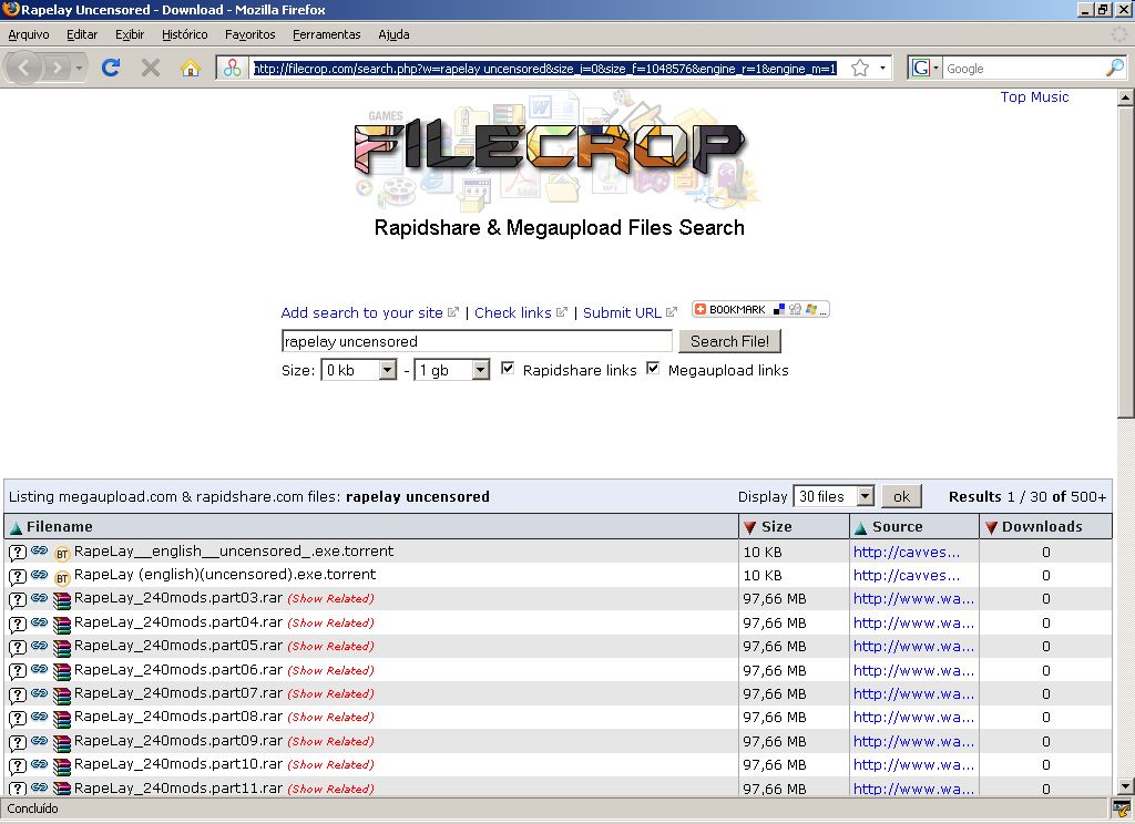O FileCrop é um site muito útil para procurar arquivos hospedados em 2 dos maiores serviços de arquivos do mundo, MegaUpload e RapdShare.