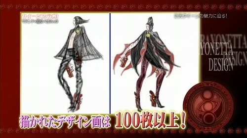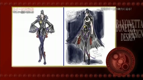 O artista Mari Shimazaki teve umas 100 ideias para a Bayonetta até chegar no modelo que conhecemos.