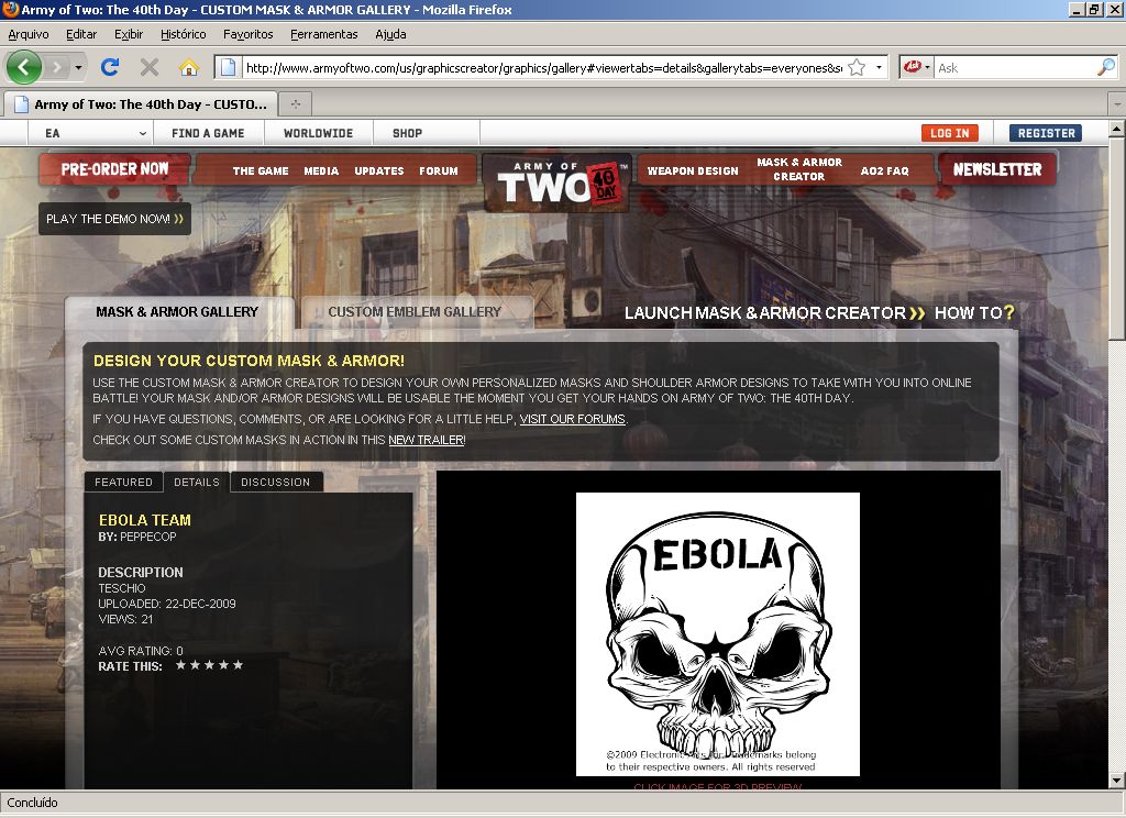 A Eletronic Arts colocou no site do jogo uma ferramenta para a criação das máscaras dos personagens. Tem até um trailer pra isso, veja: