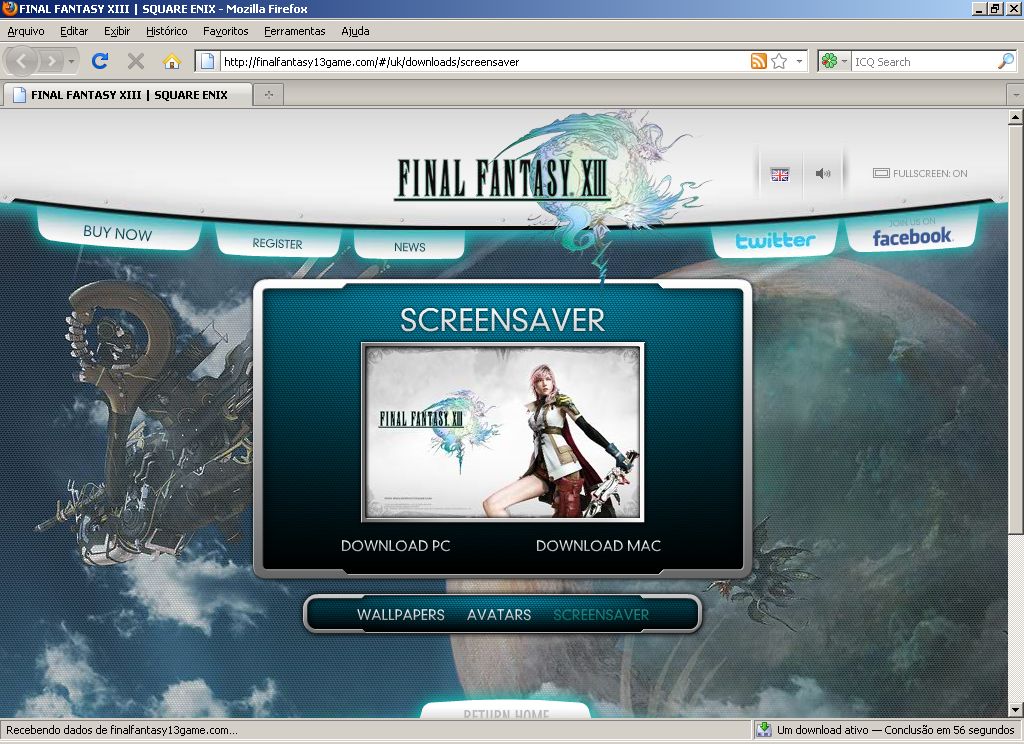 A Square Enix, através do Twitter, anunciou que liberou um screensaver (proteção de tela) no site oficial de Final Fantasy XIII.