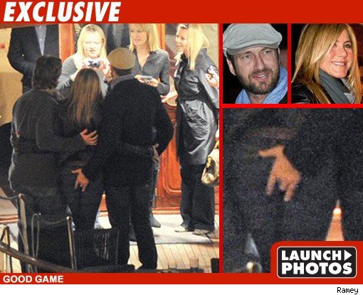 Durante a divulgação do filme Caçador de Recompensa (The Bounty Hunter) Gerard “Leônidas” Butler e Jennifer Aniston possam para uma inocente foto. Mas prestem atenção no detalhe: