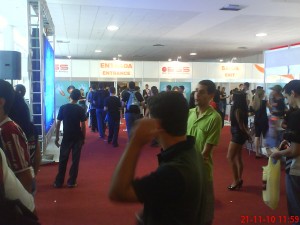 A primeira coisa que vi no evento foi uma fila enorme para entrar mas por sorte eu havia comprado o ingresso pela internet e isso adiantou muito. Já dentro do evento o que chamou a atenção foi a briga entre a Sony e a 7Seven para ver quem tinha o maior estande. A Sony atacou de 3D com as belissimas TV Bravia e alguns jogos como StarDust e Vipeout, todos em 3D, enquanto a 7Seven tinha de Kinect até um Autorama gigante (!).