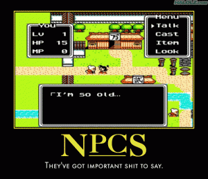 Na maioria do jogos o NPC que nos acompanham são os caras mais fodões, verdadeiros Chuck Norris, eles colocam o ultimo chefe para chorar como uma criancinha que perdeu os pais no parque de diversões. Mas sempre, sempre eles desaparecem ou morrem quando precisamos deles.