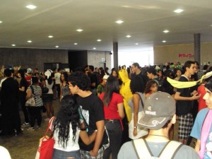 Queria dizer que eu não gostei do Atsuicon pra não dizer que eu ODIEI.O espaço não foi adequadamente utilizado insatisfazendo a todos,sem contar na total falta do que fazer.Aos apreciadores do hardcore,eles tiveram que inventar outro modo de manter essa ‘tradição’:Anets a ‘porrada’ era pulando,se empurrando e aí vai,agora é se chutando,pois a banda esava tocando no auditório com lugares contados.Ou seja,quem quisesse vir tinha que esperar em uma fila quilomêtrica a boa vontade de alguém descer para mais pessoas verem, as apresentações,não só de bandas como cosplay,palestras e não sei o que teve mais.Pessoas reclamando de tédio.Quem não tava jogando,tava comprandopo ou vendo as apresentações,mas eu por exemplo não fiz NADA,só ficar enchendo o saco dos outros e tirando foto,fui apelidada de ‘shinigam,i sexy’ -se achando-.Fora isso tudo e o fato de eu tá sem dinheiro que não dava nem pra contar um cachorro quente que estava a 3 conto eu achei bom.