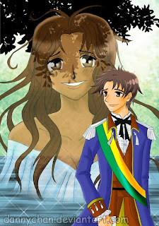Estou querendo criar uma história do Brasil. Criei os dois personagens: A bela morena e o rapaz batalhador representam como e o Brasil do Norte e o Brasil do Sul. Não só os ambos, mas também criei um jovem que representa Portugal. Já divulguei no Deviantart, e o povo português gostou dos personagens originais meus.