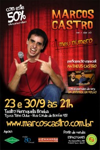 O comediante Marcos Castro entrou de vez na internet da melhor maneira possível, como um Vlogueiro. Como ele vai fazer um show lá perto de casa, não custa nada ir ver (na verdade custa R$15,00 com a minha carteirinha de estudante falsa, mas tá valendo!). 😉