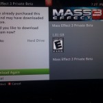 De acordo com os fóruns do Neogaf, uma beta de Mass Effect 3 esteve disponível por algumas horas no serviço Xbox Live do Xbox 360.
