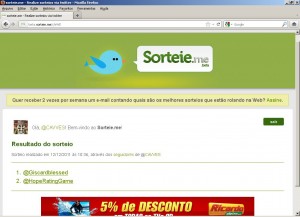 Pessoal, o sortudo @Giscardblessed não responde as minhas mensagens enviadas pelo Twitter. Neste caso, se ele não se manifestar até amanhã eu serei obrigado a fazer um novo sorteio!