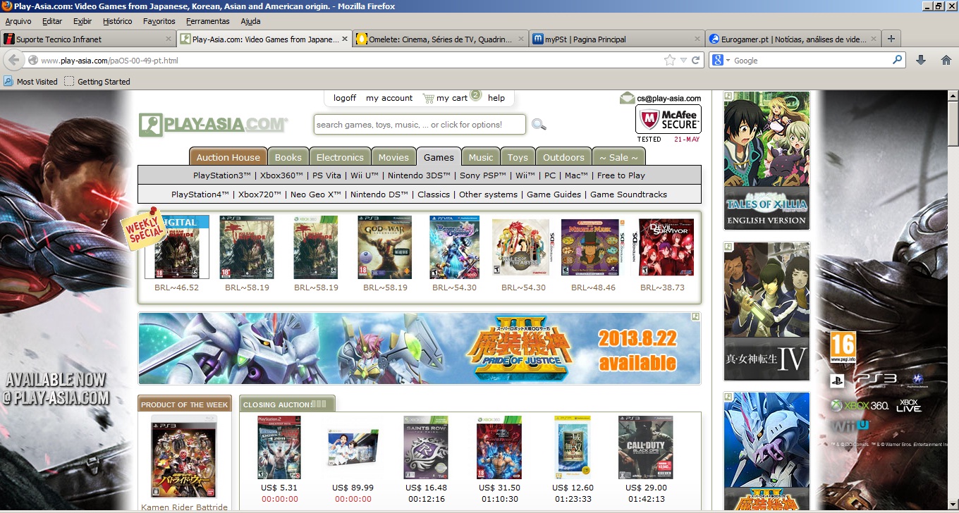 Mais uma semana e mais um especial da Play-Asia. Esta semana temos vários jogos apartir de R$40,00!!!! Destaque para God of War: Ascension (PS3) por R$59,00!!!