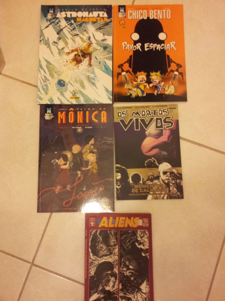 Fui surpreendido pelas “grafic novels” do selo MSP, continuei minha saga de leitura pessoal em Walking Dead e consegui uma edição antiga de Aliens que faltava na minha coleção.