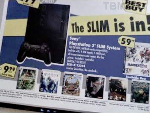 Segundo uma fonte anonima no Gizmodo, a loja Americana Kmart está distribuindo panfletos para promover o novo PlayStation 3 Slim. Segundo a loja, o novo modelo Slim com disco de 120GB vai ser vendido “dentro de poucas semanas” com um preço de 299.99 dólares. Nada certo e tudo pode se tratar de brincadeiras e falsas …