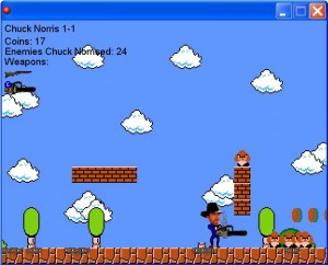 O Homem, o Mito, a Lenda, o Jogo!? É o jogo!!! [youtube=http://br.youtube.com/watch?v=uCaUre8Ju94&eurl=http://kotaku.com/5024608/super-chuck-norris-bros–wait-this-is-real] O teaser apareceu pela primeira vez no YouTube em 2006, e o mundo dos jogos sabia que era apenas uma questão de tempo até que a idéia fosse colocada em prática. Fonte e download: aqui e aqui “Chuck Norris doesn’t need a mushroom.”