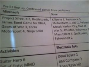 Uma lista com os supostos jogos para E3 espalhou-se pela Internet via Twitter. Ninguém sabe ao certo a origem da lista ou como esta veio parar na Internet. Na imagem acima podem observar que por parte da Microsoft os jogos confirmados são: Gears of War 3, Forza Motorsport 4, Ninja Solid e um jogo do …