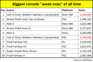 Segundo o site VGChartz, o jogo da Activision está “vendendo que nem água”, ultrapassando os 7 milhões de copias desde o momento em que foi lançado. Para terem uma ideia, Grand Theft Auto IV vendeu 6 milhões de unidades na sua primeira semana, Warfare 2 foi lançado a 2 dias atrás, dia 10 de Novembro, …