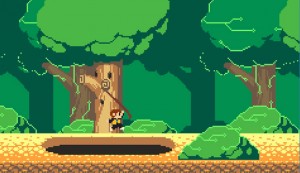 Game Hero é uma homenagem aos games antigos. Enquanto percorre as fases de plataforma, o herói encontra cenários de jogos como Pitfall, Contra e Donkey Kong. E já está liberado o mundo 16 bits, cheio de referências a Chrono Trigger, Super Mario World e Street Fighter II.