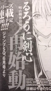 A última edição da Jump Square revelou que, após uma pausa de 12 anos, o mangaka Nobuhiro Watsuki vai começar a trabalhar novamente no manga de Samurai X (Rurouni Kenshin).