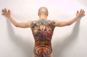 Verdade!? Photoshop!? Um membro da Yakuza fã de EVA!? Não interessa!!! Isso mesmo, fã que é fã faz uma tatoo de seu anime favorito nas costas…. Esperem só para ver o meu Valkyrie!