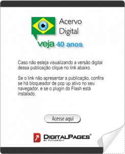 Numa iniciativa inédita no Brasil, a revista Veja disponibilizou todo o seu acervo na Internet. Todas as edições, desde a primeira, de 11 de setembro de 1968, podem ser lidas e consultadas gratuitamente no http://veja.abril.com.br/acervodigital/. Uma verdadeira democratização do acesso à história recente do País e do mundo. É fácil de ser utilizado: o acervo …